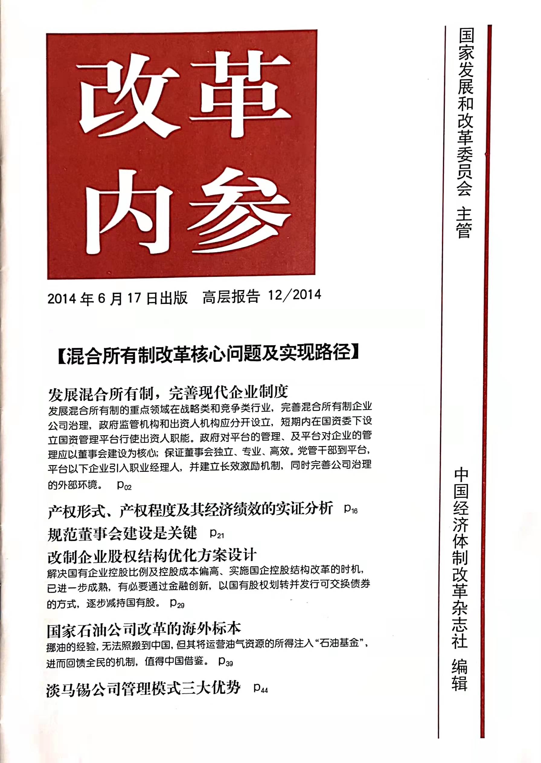 2014年6月,求是咨詢董事長(zhǎng)、《改革內(nèi)參》特約研究員安林博士,應(yīng)邀為《改革內(nèi)參》撰寫特約文章:《規(guī)范董事會(huì)建設(shè)是關(guān)鍵》。