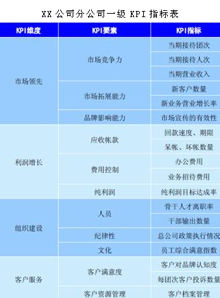 關(guān)鍵成功要點(diǎn)分析,就是要尋找一個(gè)企業(yè)成功的關(guān)鍵要點(diǎn)是什么,并對(duì)于企業(yè)成功的關(guān)鍵要點(diǎn)進(jìn)行重點(diǎn)監(jiān)控。通過尋找企業(yè)成功的關(guān)鍵,層層分解從而選擇考核的KPI指標(biāo)。基本思想是通過分析企業(yè)獲得成功或取得市場領(lǐng)先地位的關(guān)鍵因素是什么,由此提煉出導(dǎo)致成功的關(guān)鍵業(yè)績模塊(又稱為“KPI維度”);再把業(yè)績模塊層層分解為關(guān)鍵要素,為了便于對(duì)這些要素進(jìn)行量化考核與分析,要把要素細(xì)分為各項(xiàng)指標(biāo),即KPI指標(biāo)。