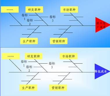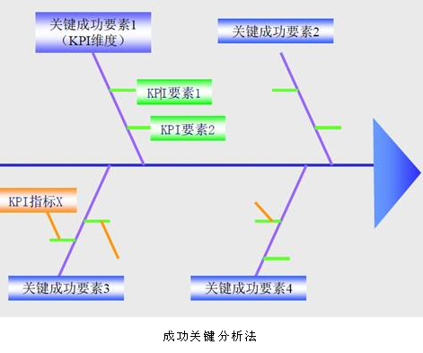 1)通過魚骨圖分析,尋找企業(yè)成功關(guān)鍵要素,即確定企業(yè)KPI維度,也就是明晰要獲得優(yōu)秀的業(yè)績所必須的條件和要實(shí)現(xiàn)的目標(biāo);