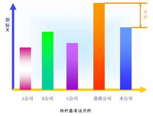 標(biāo)桿基準(zhǔn)法是企業(yè)將自身的關(guān)鍵業(yè)績行為與最強(qiáng)的競爭企業(yè)或那些在行業(yè)中領(lǐng)先的、最有名望的企業(yè)的關(guān)鍵業(yè)績行為作為基準(zhǔn)進(jìn)行評(píng)價(jià)與比較,分析這些基準(zhǔn)企業(yè)的績效形成原因,在此基礎(chǔ)上建立企業(yè)可持續(xù)發(fā)展的關(guān)鍵業(yè)績標(biāo)準(zhǔn)及績效改進(jìn)的最優(yōu)策略的程序與方法。標(biāo)桿基準(zhǔn)法成功的關(guān)鍵在于尋找業(yè)界最佳業(yè)績標(biāo)準(zhǔn)作為參照的基準(zhǔn)數(shù)據(jù)(如,客戶滿意度、勞動(dòng)生產(chǎn)率、資金周轉(zhuǎn)速度等),確定最優(yōu)績效標(biāo)準(zhǔn)后,企業(yè)需以最優(yōu)業(yè)績標(biāo)準(zhǔn)為牽引,確定企業(yè)成功的關(guān)鍵領(lǐng)域,通過各部門及員工持續(xù)不斷的學(xué)習(xí)與績效改進(jìn),縮小與最優(yōu)基準(zhǔn)之間的差距。