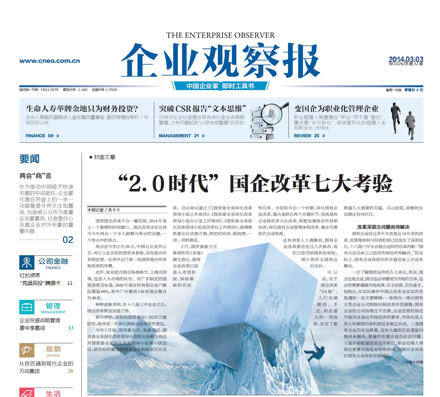 對(duì)此,國(guó)資委研究中心企業(yè)發(fā)展與改革研究部部長(zhǎng)王志綱對(duì)《企業(yè)觀察報(bào)》記者表示:目前在“頂層設(shè)計(jì)”的改革方向明確的前提之下,改革各重要環(huán)節(jié)中一些基本邏輯、細(xì)節(jié),還需充分討論、妥善處理。改革一個(gè)長(zhǎng)期的歷史存在,改變諸多遺留的問(wèn)題,仍然是一個(gè)較長(zhǎng)時(shí)間的探索,最好有可供參考的樣本、穩(wěn)妥的方案,穩(wěn)步推進(jìn),避免推進(jìn)粗放而有失周全。