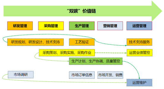 三是生產(chǎn)管理環(huán)節(jié),“雙碳”價(jià)值鏈重塑要求企業(yè)生產(chǎn)運(yùn)營(yíng)中使用的設(shè)備、原材料低碳化、零碳化,不僅降低生產(chǎn)流程中的碳排放,也將降低產(chǎn)品全生命周期的碳排放,最終實(shí)現(xiàn)生產(chǎn)全流程的碳中和。