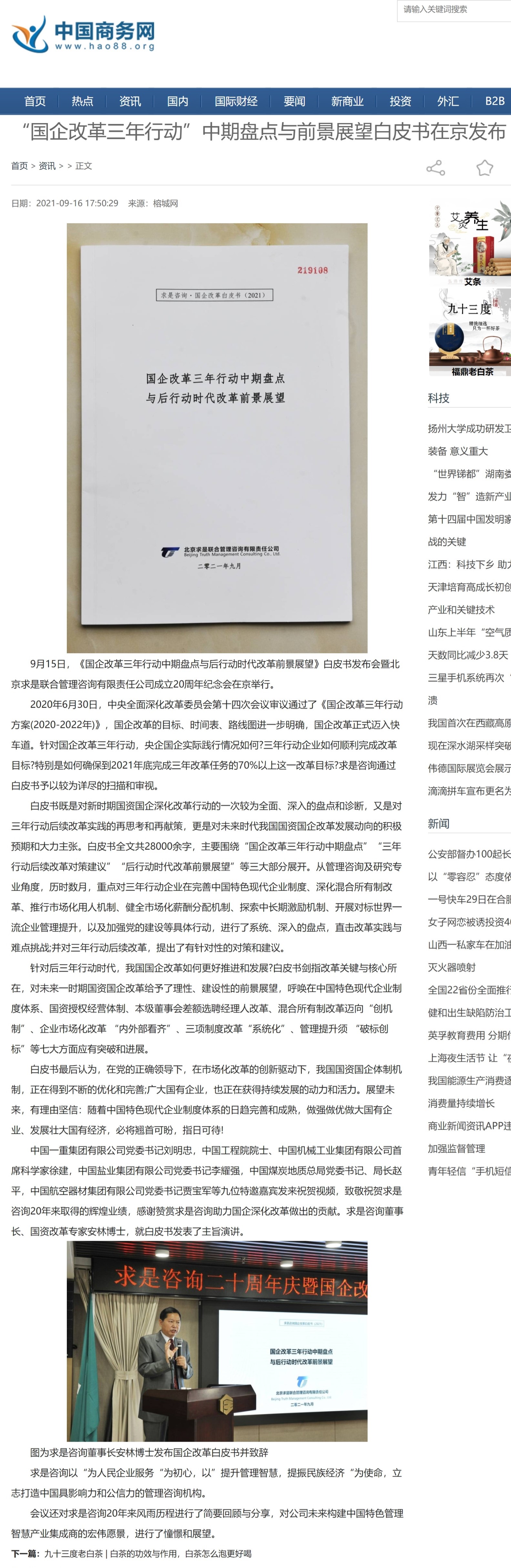 《中國商務(wù)網(wǎng)》:“國企改革三年行動”中期盤點與前景展望白皮書在京發(fā)布