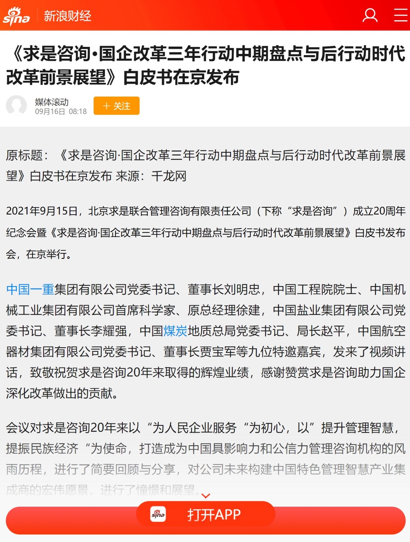 《新浪財經(jīng)》:《求是咨詢·國企改革三年行動中期盤點與后行動時代改革前景展望》白皮書在京發(fā)布