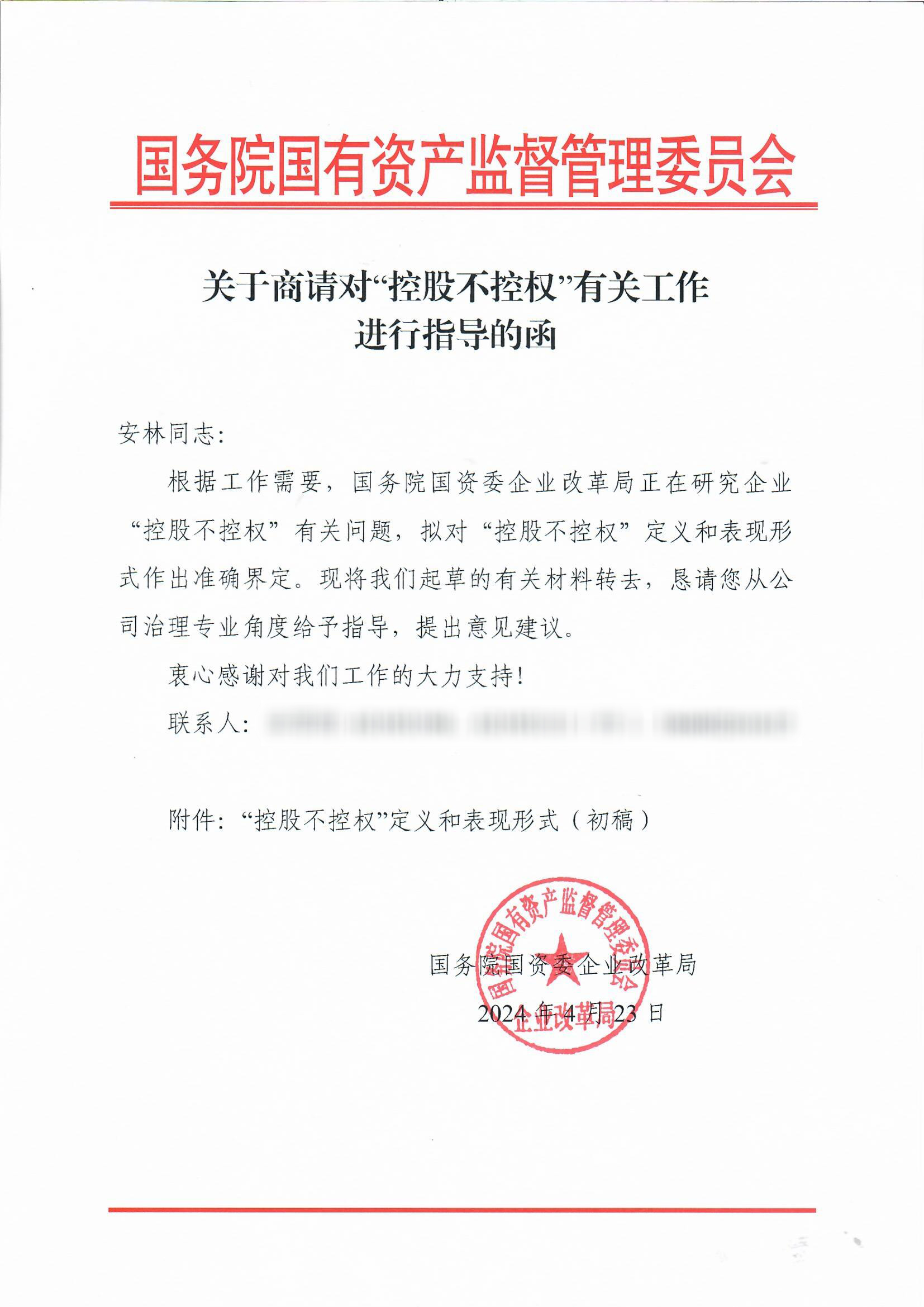 為此,求是咨詢董事長、管理學(xué)博士安林受國務(wù)院國資委企業(yè)改革局的邀請(qǐng),針對(duì)國資委企業(yè)改革局起草的“控股不控權(quán)”的定義和表現(xiàn)形式(初稿),從公司治理角度給于指導(dǎo)并提出相關(guān)建議。
