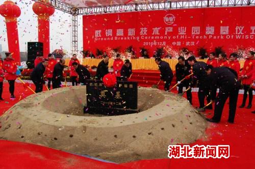 省委副書(shū)記、武漢市委書(shū)記楊松,武漢市長(zhǎng)阮成發(fā),市委常委、東湖高新技術(shù)開(kāi)發(fā)區(qū)黨工委書(shū)記賈耀斌,武鋼總經(jīng)理鄧崎琳、副總經(jīng)理張翔等揮鍬破土,為武鋼高科技術(shù)產(chǎn)業(yè)園奠基。