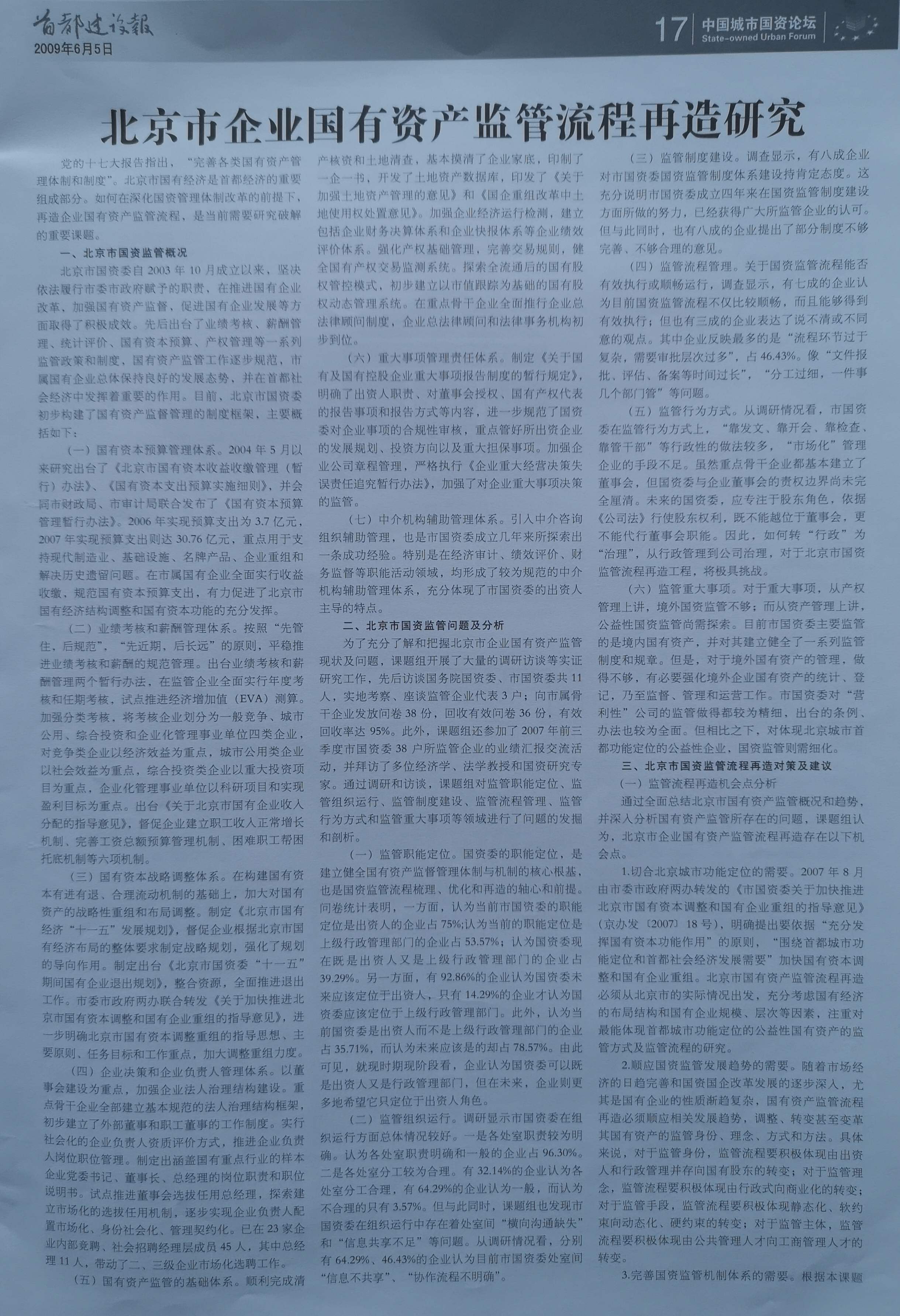 課題研究成果發(fā)布于2009年度中國(guó)城市國(guó)資論壇,并收錄于2009年6月5日出版的《首都建設(shè)報(bào)》。