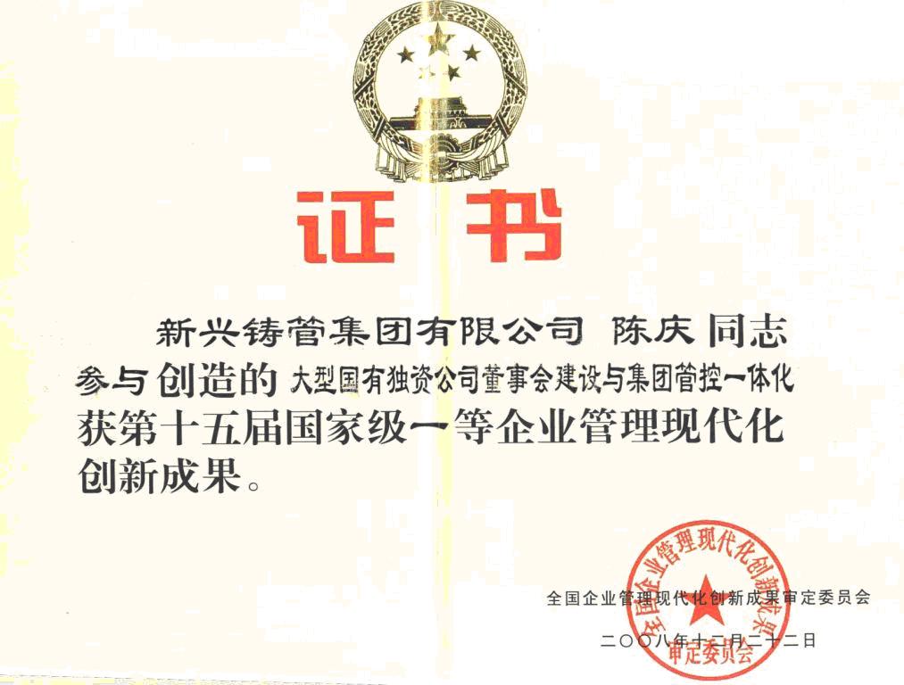 2008年 新興鑄管集團(tuán)申報第十五屆國家現(xiàn)代化管理創(chuàng)新成果獎咨詢項(xiàng)目