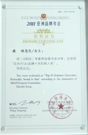 2012年1月7日,由環(huán)球時報社、(香港)亞洲品牌協(xié)會、國家發(fā)改委《宏觀經(jīng)濟(jì)管理》和中華工商時報社共同主辦的“2011亞洲品牌年會”在北京釣魚臺盛大召開,期間頒布了“2011亞洲品牌成長100強(qiáng)” 和“2011中國品牌100強(qiáng)”兩項綜合榜單,以及包括人物類和品牌類在內(nèi)的五項獎項。