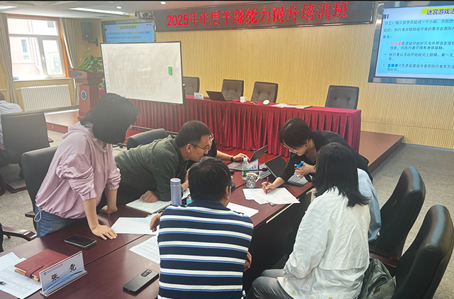 在第一天的課程中,崔教授以“戰(zhàn)略思維-組織協(xié)調(diào)-激勵賦能-自我迭代”四維領(lǐng)導(dǎo)力模型為框架,結(jié)合戰(zhàn)略地圖、OKR等工具,解析目標(biāo)分解與過程管控方法。通過“情境領(lǐng)導(dǎo)力”工具對員工發(fā)展階段進(jìn)行診斷,配套指令型、輔導(dǎo)型等差異化激勵策略,并引入OJT工作指導(dǎo)法與BIA反饋模型,構(gòu)建“目標(biāo)可視化-過程管控-結(jié)果閉環(huán)”的執(zhí)行鏈條。沙盤推演環(huán)節(jié)模擬真實(shí)管理場景,學(xué)員分組完成危機(jī)決策,在實(shí)戰(zhàn)中鍛煉資源整合與團(tuán)隊協(xié)同能力。