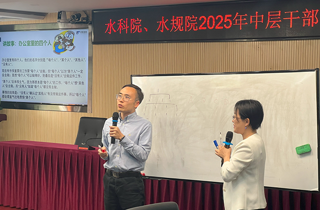 2025年5月16日和17日,求是咨詢受邀為北京水技術(shù)科學(xué)研究院(以下簡稱水科院)和北京市水務(wù)規(guī)劃院(以下簡稱水務(wù)規(guī)劃院)個性定制、專項開發(fā)的中層干部管理提升專題培訓(xùn)在水科院學(xué)術(shù)報告廳隆重開班,水科院領(lǐng)導(dǎo)、水務(wù)規(guī)劃院領(lǐng)導(dǎo)、各部門中層干部及相關(guān)人員參與了本次培訓(xùn)。求是咨詢總經(jīng)理陳慶博士出席開班儀式,求是咨詢資深講師崔教授授課。