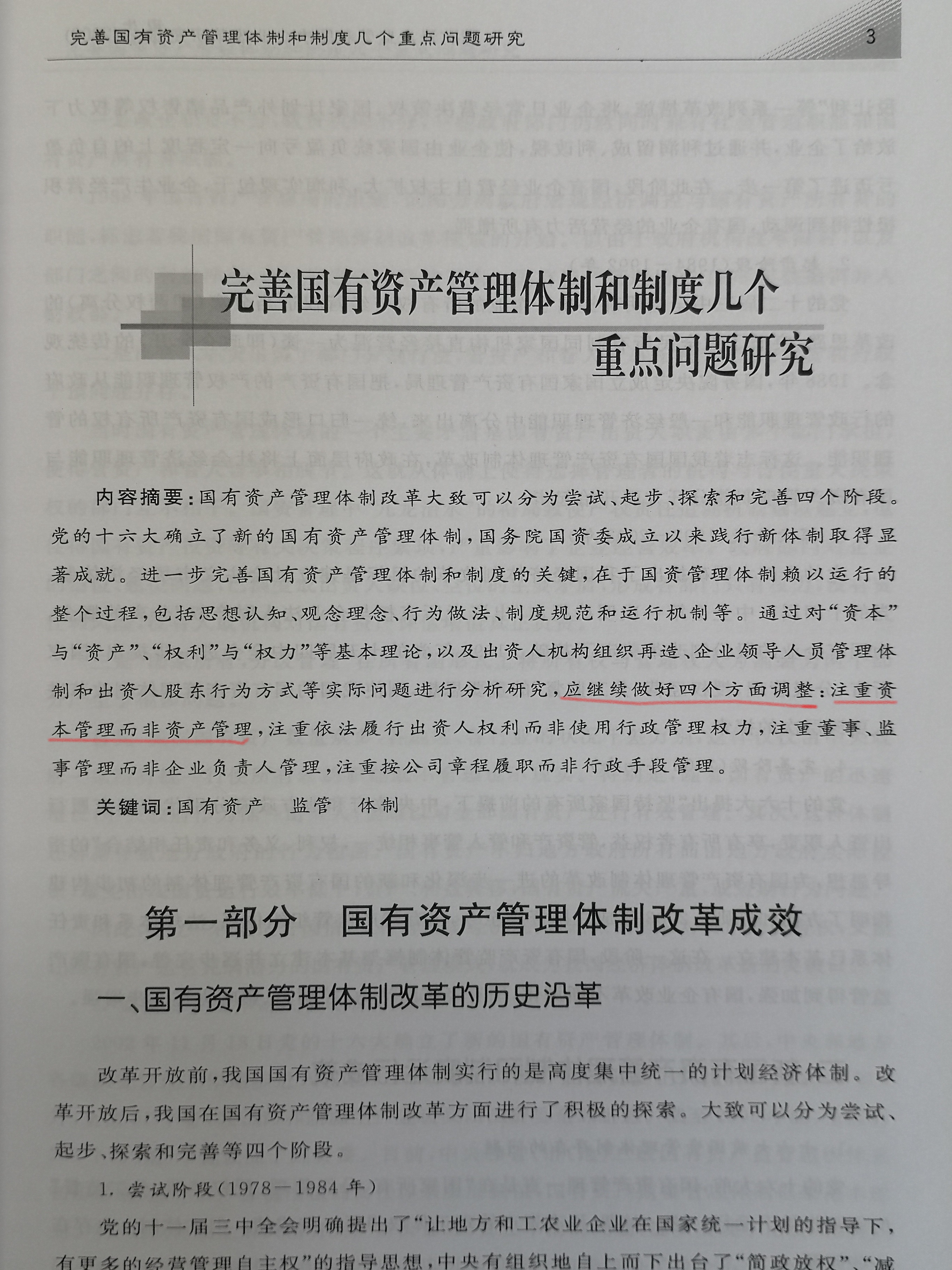 2008年在受邀主持國務(wù)院國資委重大課題《完善國有資產(chǎn)管理體制和制度的若干重點問題研究》時,系統(tǒng)論證并提出了“管資本”的概念理念,“管資本”后在黨的十八大報告(2013年11月)中正式提出。課題由求是咨詢董事長安林博士執(zhí)筆,國資委研究局(時為研究室)、法規(guī)局牽頭,改革局、規(guī)劃局、綜合局、黨建局等十多個局共同參與。研究成果收錄于國務(wù)院國資委研究局編著的《探索與研究:國有資產(chǎn)監(jiān)管和國有企業(yè)改革研究報告(2009)》一書。