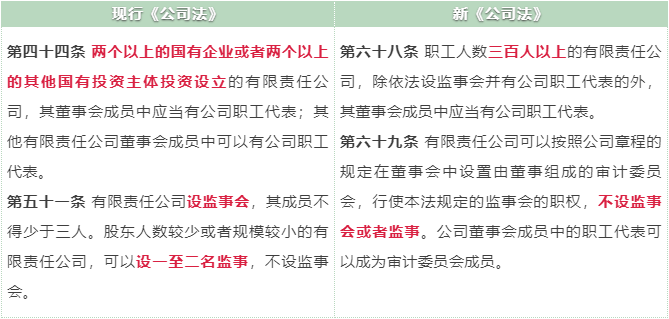 關(guān)于職工董事設(shè)置,現(xiàn)行《公司法》要求兩個(gè)以上的國(guó)有企業(yè)或者兩個(gè)以上的其他國(guó)有投資主體投資設(shè)立的有限責(zé)任公司應(yīng)設(shè)職工董事。新《公司法》則從企業(yè)規(guī)模角度提出了職工董事的設(shè)置要求,職工三百人以上的有限責(zé)任公司應(yīng)設(shè)職工董事。