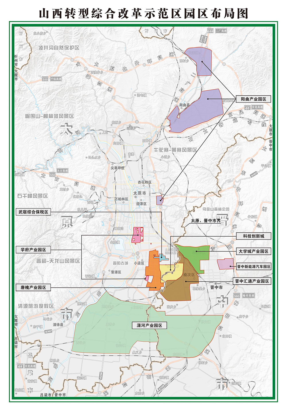 山西轉(zhuǎn)型綜改示范區(qū)是山西省委、省政府為加快創(chuàng)新發(fā)展,實(shí)現(xiàn)振興崛起,在太原都市區(qū)核心區(qū)域整合了4個國家級開發(fā)區(qū),3個省級開發(fā)區(qū)以及山西大學(xué)城,并向南、向北建立擴(kuò)展區(qū)開辟而成的一個轉(zhuǎn)型綜改示范區(qū)。全區(qū)總規(guī)劃面積約600平方公里,將重點(diǎn)打造先進(jìn)制造、新能源、新材料、電子信息、健康醫(yī)療、文化創(chuàng)意等6大專業(yè)化產(chǎn)業(yè)園區(qū)。