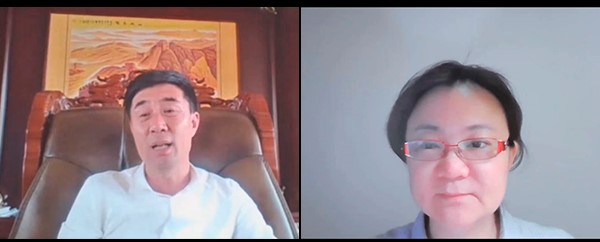 圖為興東科技董事長(zhǎng)都興東(左)、求是咨詢副總經(jīng)理郭良琴(右)通過線上會(huì)議進(jìn)行項(xiàng)目溝通