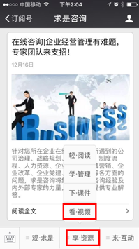第二步,通過公眾號下方菜單欄“享·資源”,進入“看·視頻”版塊
