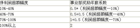事業(yè)部獎(jiǎng)勵(lì)年薪系數(shù)的確定見下表。