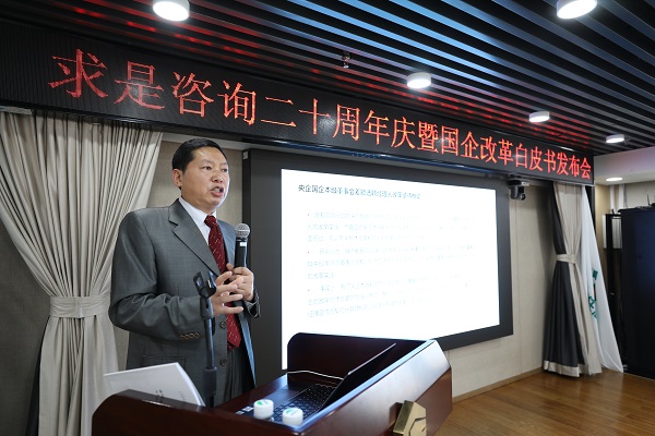 求是咨詢董事長、國資改革專家安林博士(下圖),就白皮書發(fā)表了主旨演講。