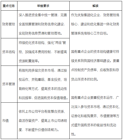 《通知》中將財務管理問題主要界定為集團財務管控薄弱、“兩金”規(guī)模較大、資金使用效率不高、資本運營能力不足,提出了財務管控、資本結構、資本管理、市值等四項對標任務。