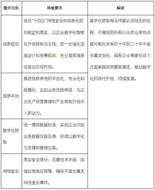 《通知》中將信息化管理問題主要界定為強化頂層設計和統(tǒng)籌規(guī)劃、促進業(yè)務與信息化的深度融合、打通信息“孤島”、加強網(wǎng)絡安全管理體系建設,提出了信息規(guī)劃、信息平臺、數(shù)字化轉型、網(wǎng)絡安全等四項對標任務。