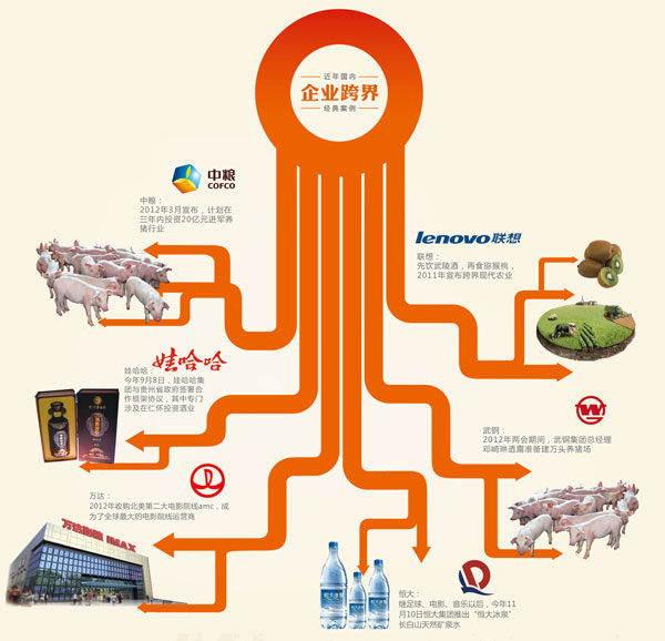 聯(lián)想、中糧、恒大、萬達與娃哈哈,中國絕大多數(shù)知名企業(yè)集團,正擠在“跨界”這條路上。