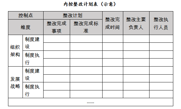 內(nèi)控整改要落實到位,必須制定嚴密的整改計劃。企業(yè)需要基于對照內(nèi)控指引發(fā)現(xiàn)的問題,制定內(nèi)控整改計劃,具體包括:明確整改完成事項、完成標準、完成時間、主要負責人、具體執(zhí)行人等。