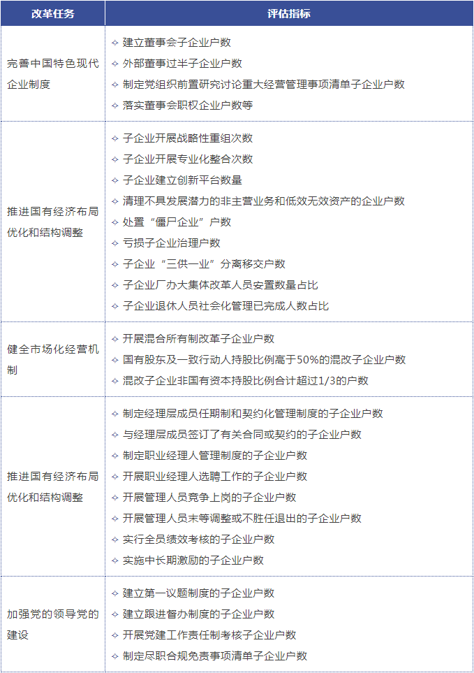 收官之年,許多國資監(jiān)管機構和企業(yè)集團要求監(jiān)管(子)企業(yè)對改革三年行動成效進行自評估,該如何評估?以某地國資監(jiān)管機構為例,一方面從各家國企最初制定的改革三年行動實施方案以及工作臺賬完成情況來評估三年行動成效,另一方面針對各項重點改革任務制定了較為詳細的量化評估指標。