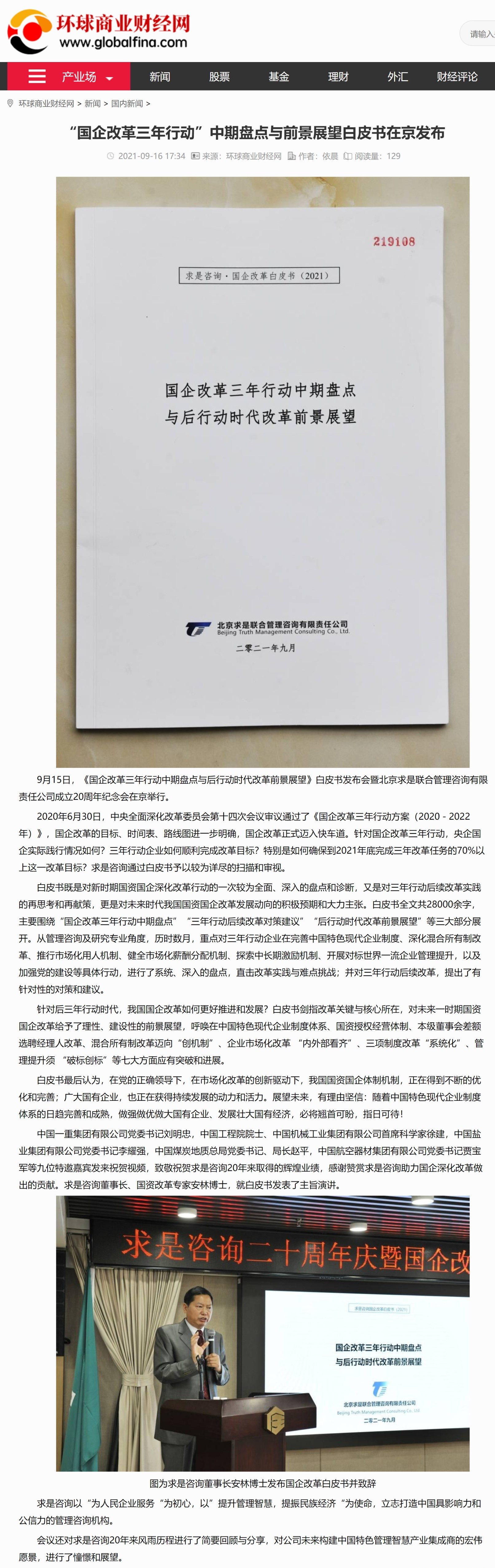 《環(huán)球商業(yè)財(cái)經(jīng)網(wǎng)》:“國企改革三年行動(dòng)”中期盤點(diǎn)與前景展望白皮書在京發(fā)布