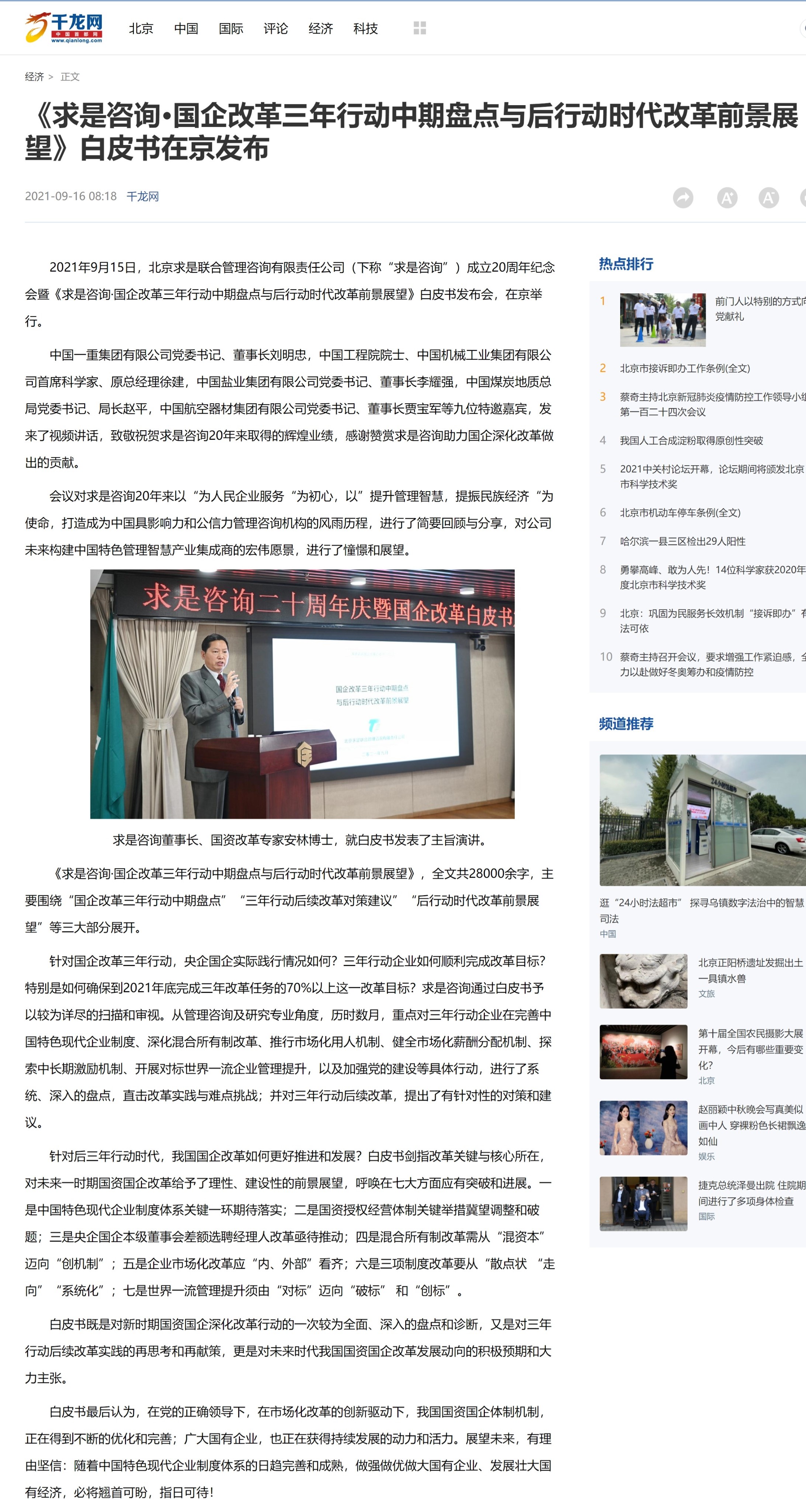 《千龍網(wǎng)》:《求是咨詢·國企改革三年行動中期盤點與后行動時代改革前景展望》白皮書在京發(fā)布