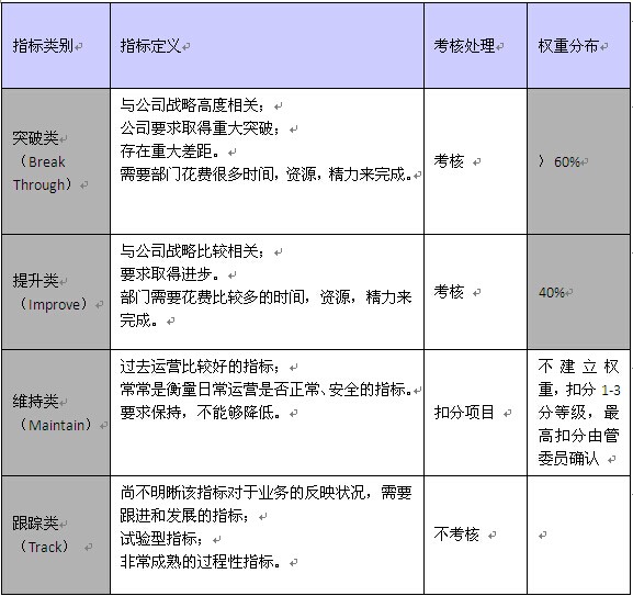 4.對(duì)指標(biāo)進(jìn)行戰(zhàn)略性分類,為突破類和提升類指標(biāo)賦予更大權(quán)重
