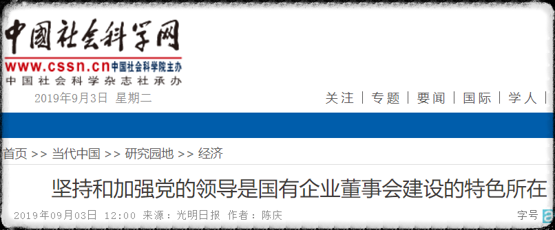 10. 發(fā)表(《光明日報》)文章《堅持和加強黨的領(lǐng)導(dǎo)是國有企業(yè)董事會建設(shè)的特色所在》經(jīng)濟學(xué)理論專版(隨后被人民網(wǎng)/中國共產(chǎn)黨新聞網(wǎng)、 黨建網(wǎng)、國務(wù)院國有資產(chǎn)管理委員會官方網(wǎng)站轉(zhuǎn)載)。