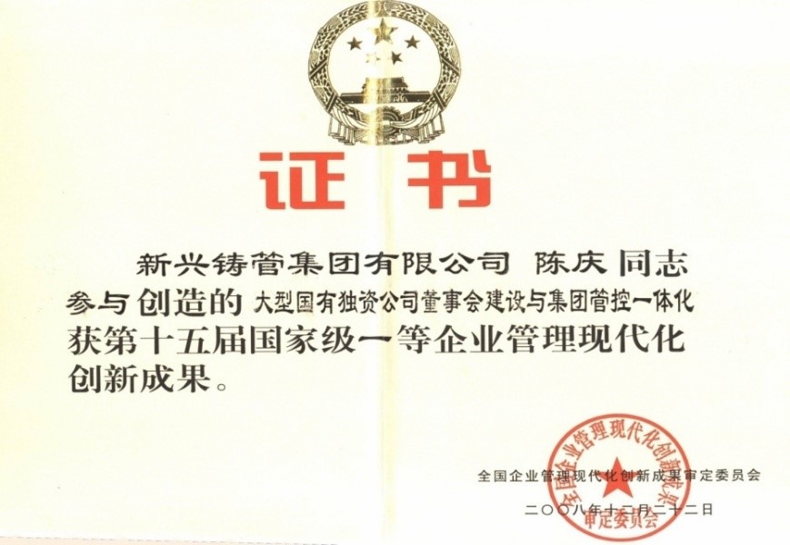 2.幫助中央企業(yè)新興際華(原新興鑄管)咨詢、提煉的《大型國有獨資公司董事會建設(shè)與集團管控一體化》獲第十五級國家一等獎管理現(xiàn)代化創(chuàng)新成果。