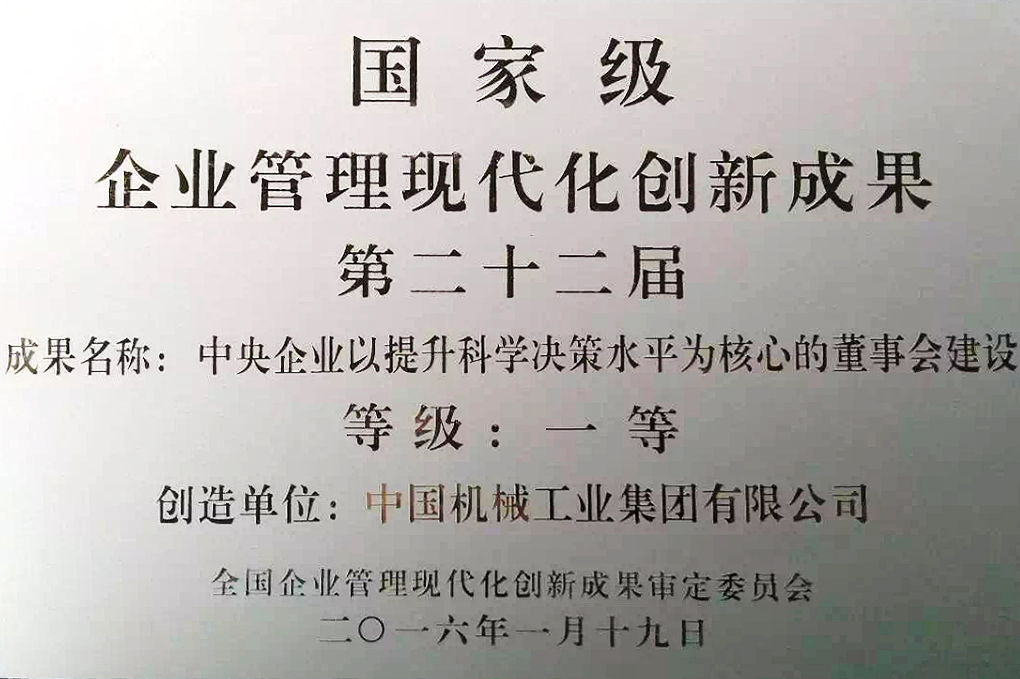 3.中國機械工業(yè)集團公司以董事會文化為特色的規(guī)范董事會建設(shè)案例研究(2014年國務(wù)院國資委資助、推廣項目),并以“中央企業(yè)以科學(xué)決策水平為核心的董事會建設(shè)”獲全國企業(yè)管理現(xiàn)代化創(chuàng)新成果“一等獎”;