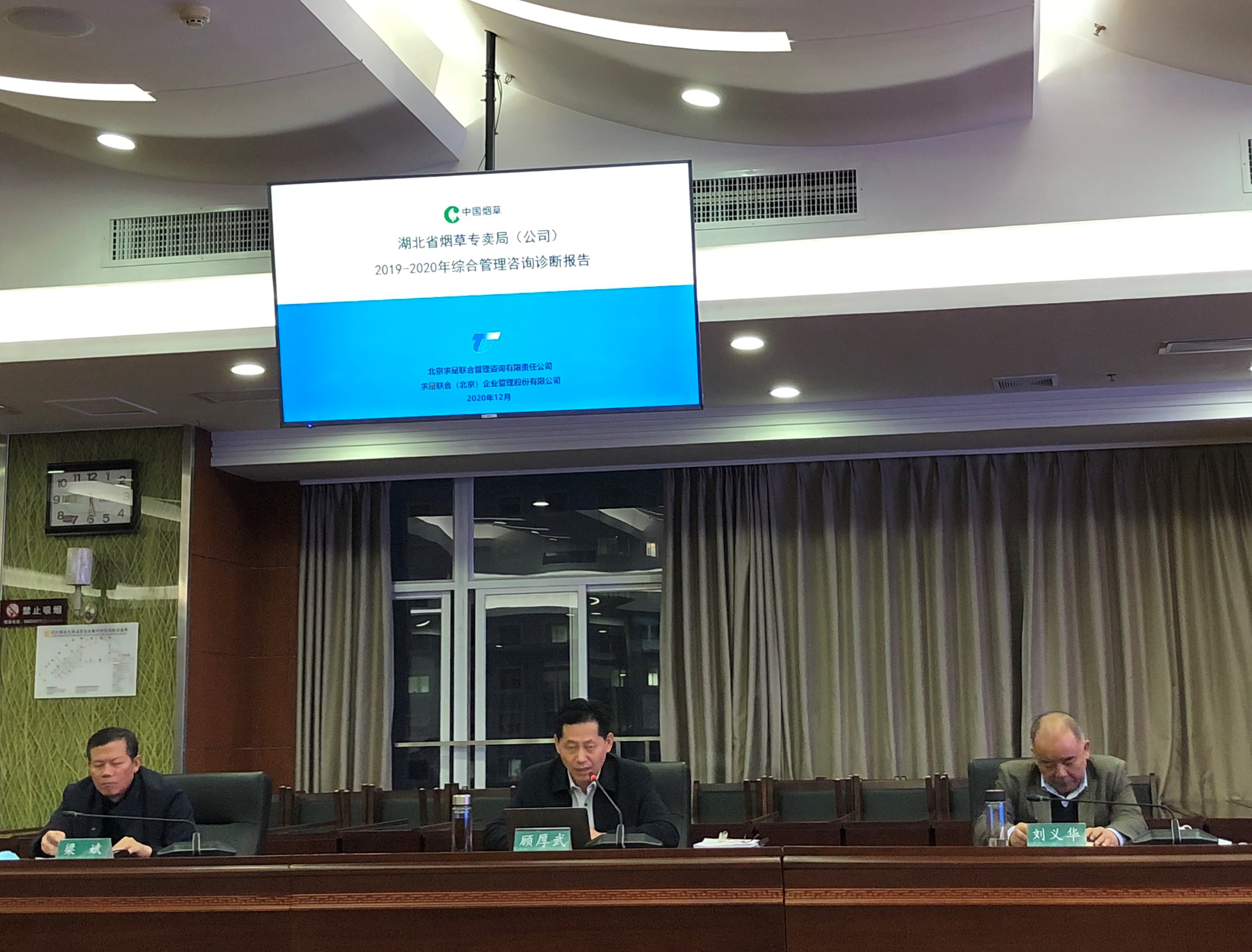 2020年12月13日,湖北省煙草專賣局(公司)召開全省商業(yè)系統(tǒng)全面管理診斷工作匯報會。省局(公司)領導、各主要職能處室負責人參加了會議。求是咨詢總經理陳慶博士出席、副總經理郭良琴女士,分別作咨詢內容匯報和咨詢工作總結。綜合管理診斷報告獲會議高度認可。