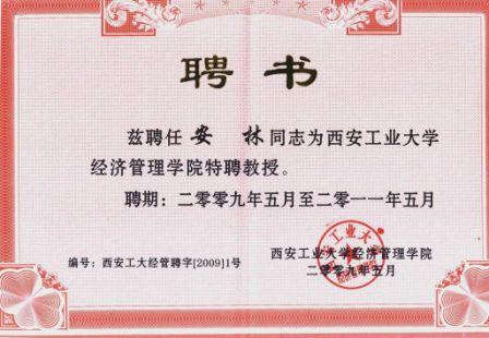 我司總裁安林博士、副總裁陳慶博士,分別獲聘西安工業(yè)大學(xué)經(jīng)濟(jì)管理學(xué)院特聘教授。
