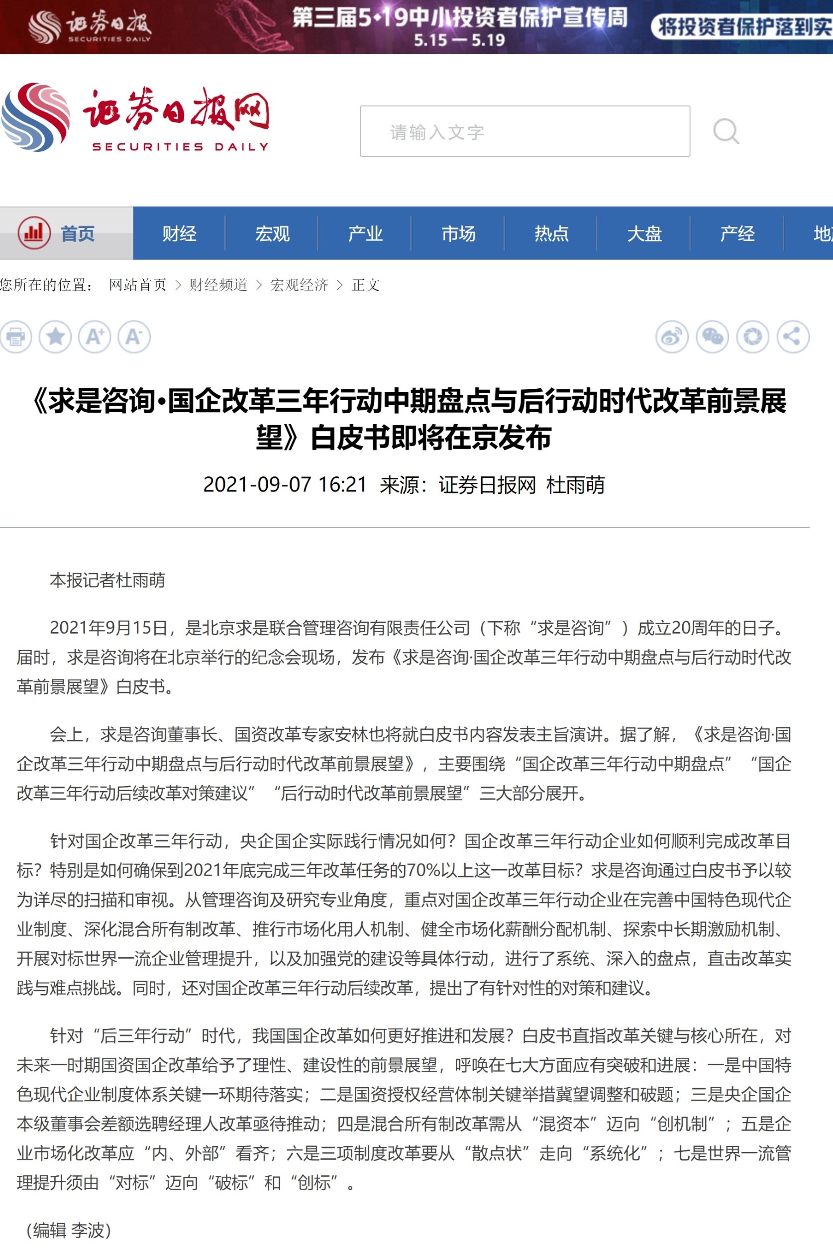 《證券日?qǐng)?bào)》:《求是咨詢·國(guó)企改革三年行動(dòng)中期盤點(diǎn)與后行動(dòng)時(shí)代改革前景展望》白皮書即將在京發(fā)布