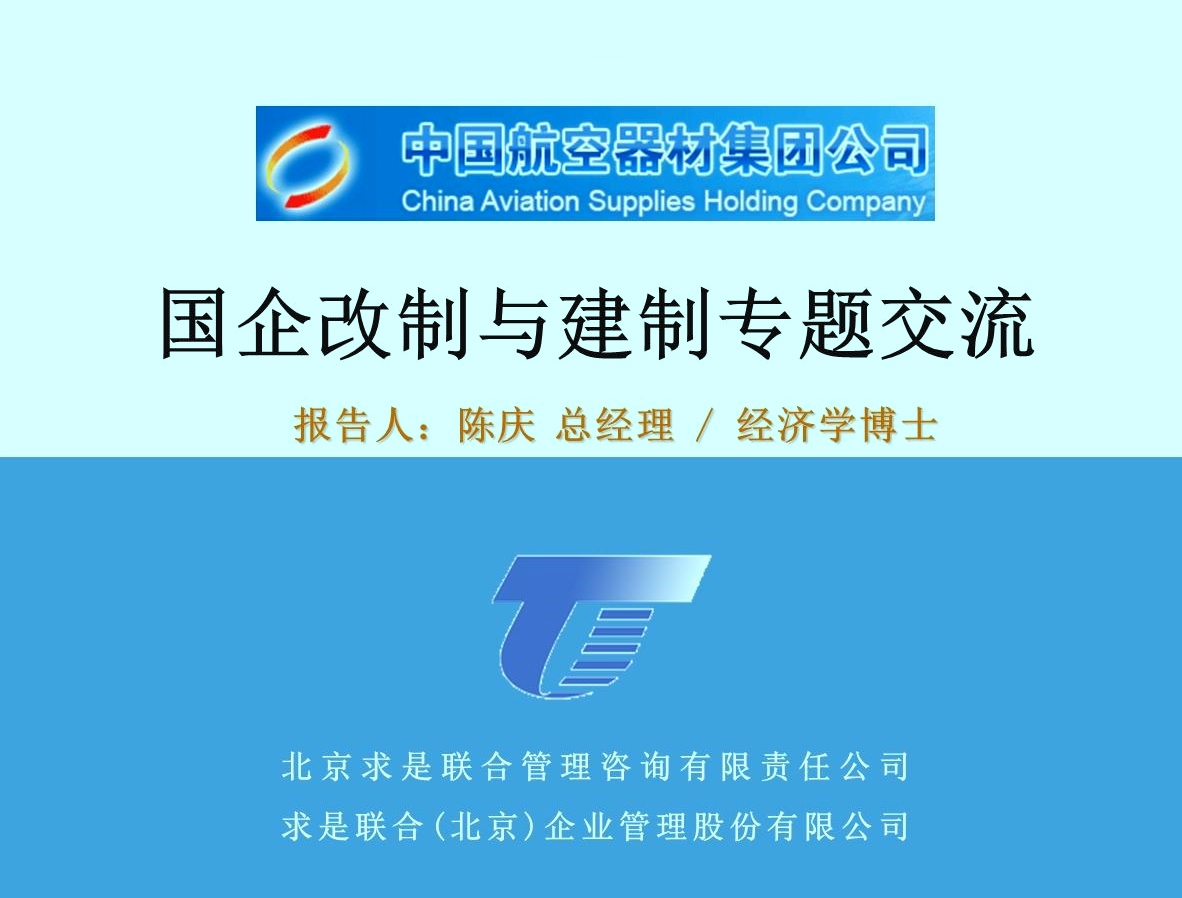 2017年7月24日,中國航空器材集團(tuán)公司總部舉辦國企改制與建制交流會(huì),求是咨詢公司總經(jīng)理陳慶博士受邀做專題講座。集團(tuán)領(lǐng)導(dǎo)班子成員及中層以上管理人員參加了交流。