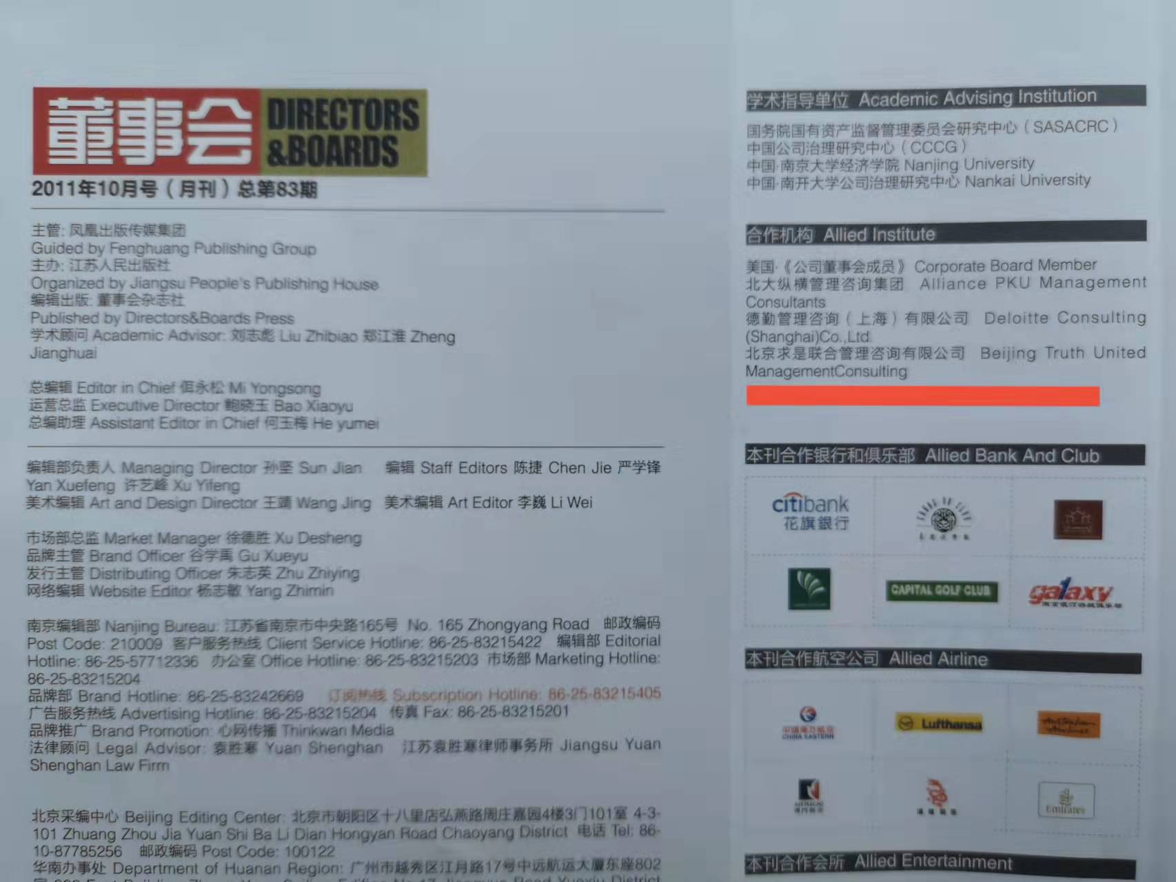 求是咨詢受邀《董事會》雜志智庫合作單位,常年為雜志提供專稿及專家智慧支持。