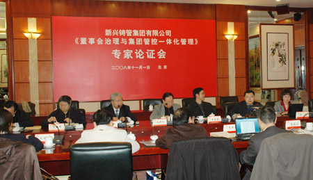 2008年11月1日,全國企業(yè)管理現(xiàn)代化創(chuàng)新成果審定委員會(huì)在北京世紀(jì)金源飯店召開了新興鑄管集團(tuán)有限公司《董事會(huì)治理與集團(tuán)管控一體化管理》專家論證會(huì)。國資委原副司長宋毓鐘、中企聯(lián)常務(wù)副秘書長胡新欣、國資委董事會(huì)工作處處長秦永法、中企聯(lián)副秘書長李建明,以及北大、清華、人大、社科院、國家行政學(xué)院、首經(jīng)貿(mào)、中央財(cái)大、北科大的領(lǐng)導(dǎo)、專家出席了論證會(huì),集團(tuán)公司黨委書記姜國鈞、董事會(huì)秘書徐建華、審計(jì)風(fēng)險(xiǎn)部副總經(jīng)理徐興周等參加了會(huì)議。