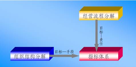 回答了上述問題以后,我們就要開始KPI指標的分解,建立KPI指標體系一般有兩條主線:按組織結構分解,“目標---手段”方法;按主要流程分解,連帶責任方法;