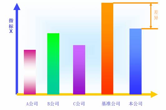 標桿基準法是企業(yè)將自身的關鍵業(yè)績行為與最強的競爭企業(yè)或那些在行業(yè)中領先的、最有名望的企業(yè)的關鍵業(yè)績行為作為基準進行評價與比較,分析這些基準企業(yè)的績效形成原因,在此基礎上建立企業(yè)可持續(xù)發(fā)展的關鍵業(yè)績標準及績效改進的最優(yōu)策略的程序與方法。標桿基準法成功的關鍵在于尋找業(yè)界最佳業(yè)績標準作為參照的基準數(shù)據(jù)(如,客戶滿意度、勞動生產率、資金周轉速度等),確定最優(yōu)績效標準后,企業(yè)需以最優(yōu)業(yè)績標準為牽引,確定企業(yè)成功的關鍵領域,通過各部門及員工持續(xù)不斷的學習與績效改進,縮小與最優(yōu)基準之間的差距。