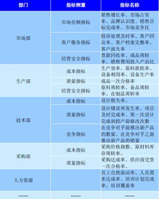 1)依據(jù)部門承擔責任不同建立KPI指標體系。