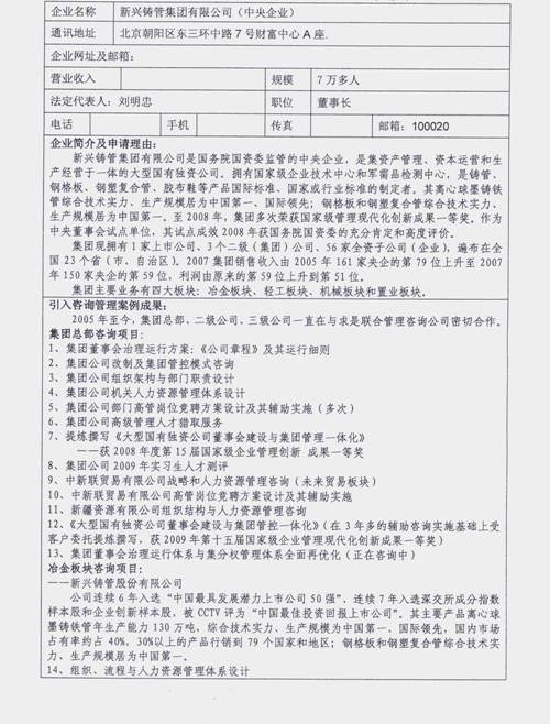 在剛剛結(jié)束的“統(tǒng)籌城鄉(xiāng)改革發(fā)展論壇暨第六屆(2009)中國管理咨詢高峰會(huì)”上,我司資深客戶中央企業(yè)新興鑄管集團(tuán)有限公司經(jīng)組織初審、機(jī)構(gòu)推薦、網(wǎng)絡(luò)投票和專家組評(píng)議,榮獲首屆“引入管理中國最佳實(shí)踐企業(yè)”獎(jiǎng)。該集團(tuán)辦公室主任宋春利出席大會(huì)并領(lǐng)獎(jiǎng)。