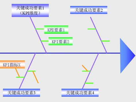 1)通過魚骨圖分析,尋找企業(yè)成功關鍵要素,即確定企業(yè)KPI維度,也就是明晰要獲得優(yōu)秀的業(yè)績所必須的條件和要實現(xiàn)的目標;
