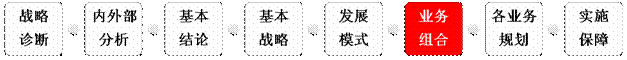 業(yè)務(wù)組合是戰(zhàn)略規(guī)劃中重要的一環(huán),是銜接前面的分析結(jié)論和后面的具體做法之間“關(guān)鍵的一跳”。具體位置如下: